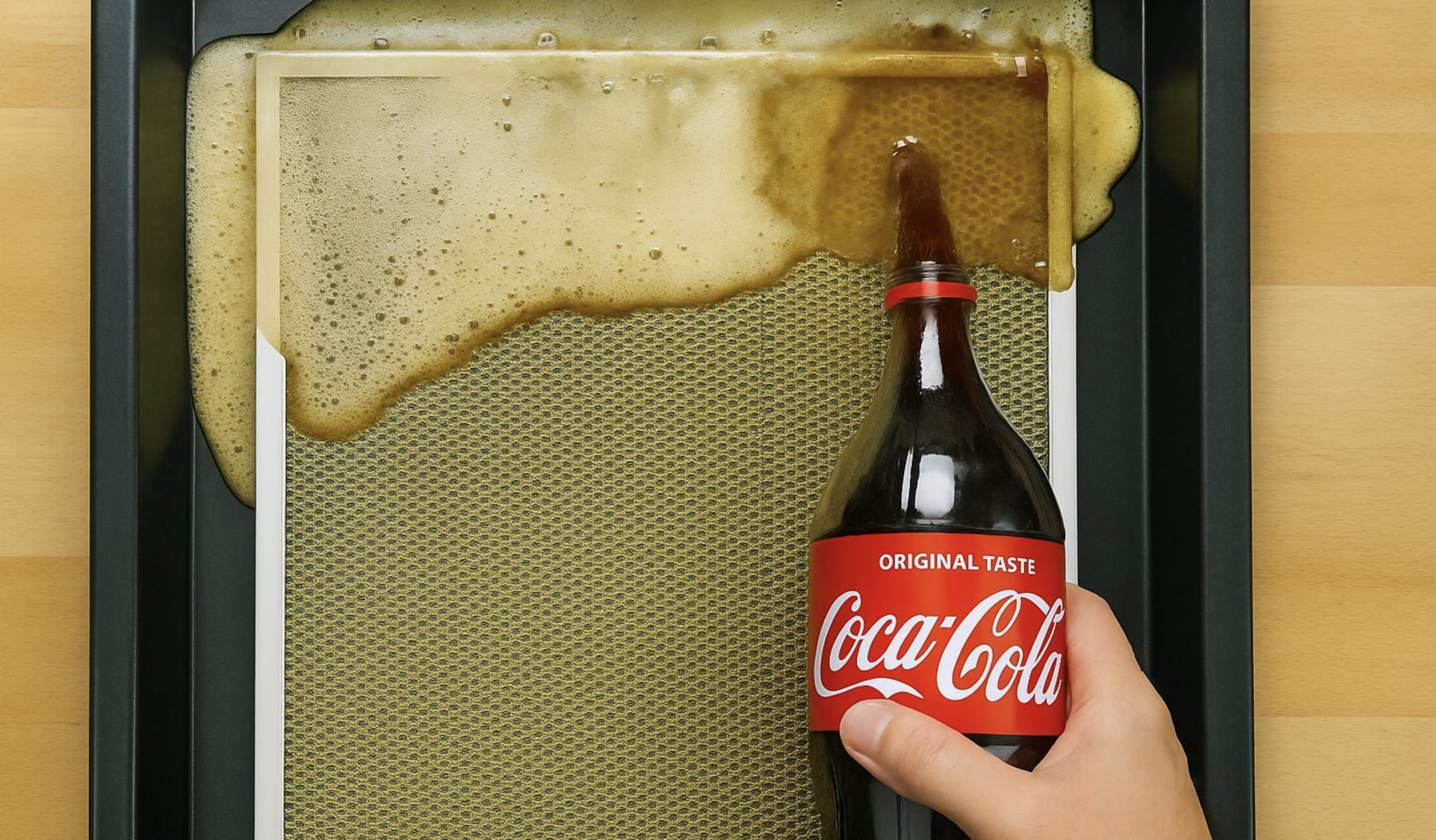 換気扇フィルターは、料理をするたびに油を吸い込みます。その油が少しずつたまり、時間が経つと粘ついて厚くなり、とても落としにくくなります。強力な油汚れ用洗剤でも、古い汚れの層を溶かしきれないことは珍しくありません。そのため、長時間こすったり、熱湯に浸したり、最終的には買い替えを考える人も多いのです。でも実は、意外な解決方法があります。それは、冷蔵庫に入っているかもしれないコーラです。少し変わって聞こえますが、コーラがその答えなのです。
