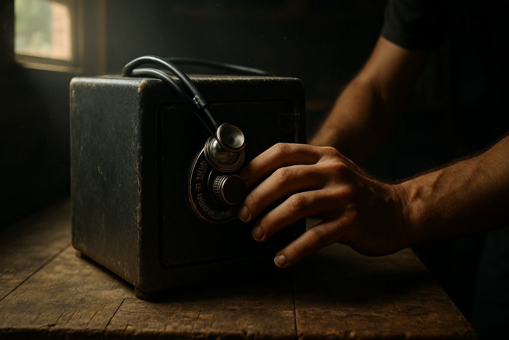 何時間も過ぎ、ネイトはスマホで「金庫の開け方」動画を見ながら試行錯誤。誰かが教えていた“磁石を背面に滑らせる”という裏技も試してみました。するとダイヤルが小さくため息をつくように動き、かすかな「カチリ」という音。全身に鳥肌が立ちます。ハンドルを引くと抵抗を感じましたが、もう一度力を込めると、ふっと密封された空気が抜けるような音がして扉が少し開きました。